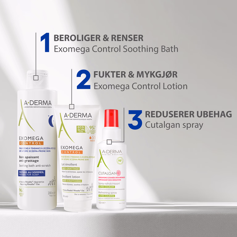 Skap et beroligende kveldsritual for hele familien. A-Derma Exomega Control Badeolje er en mykgjørende og pleiende olje som etterlater huden silkemyk og beskyttet