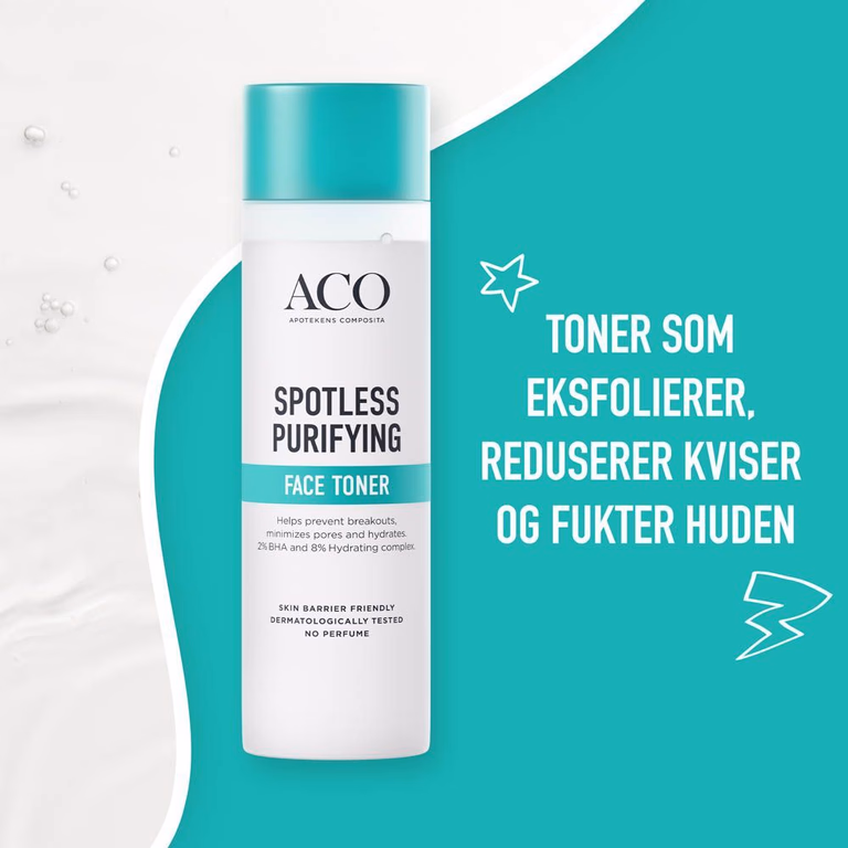ACO Spotless Face Toner er et målrettet produkt for alle fra 11 år og oppover som opplever utfordringer med kviser. Hemmeligheten ligger i den aktive kombinasjonen av rensende ingredienser som fjerner bakterier og fettstoffer hverdagsrens alene ikke alltid når. Ved å integrere denne toneren i din daglige rutine, hjelper du huden med å opprettholde en sunn balanse uten tette porer.