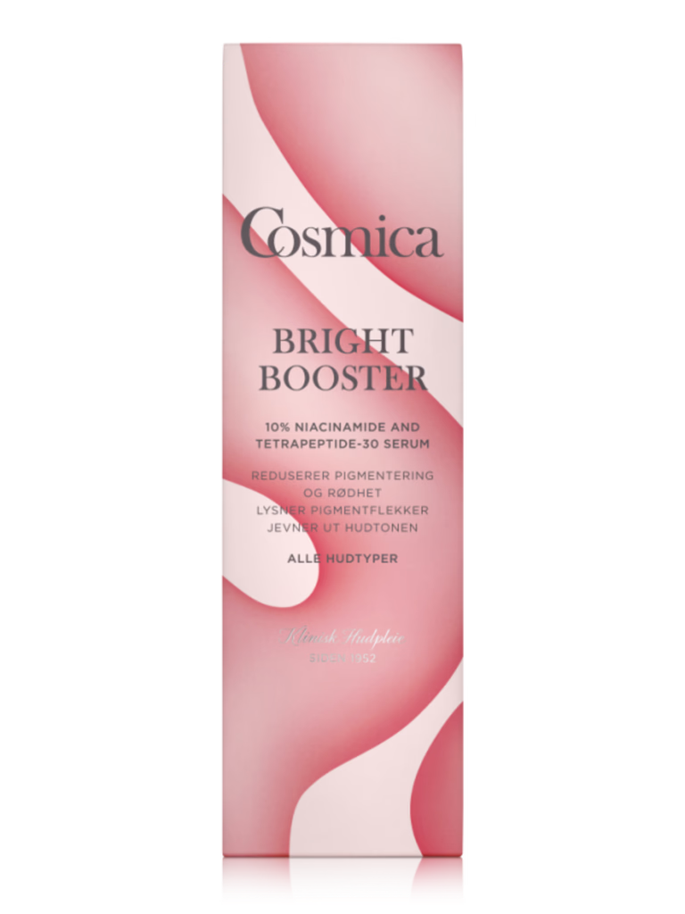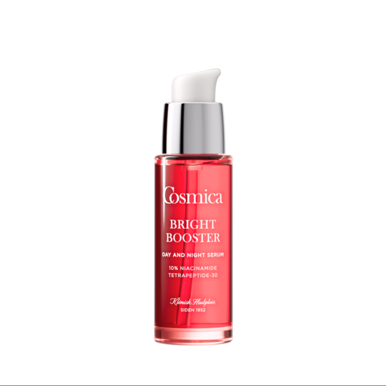 Vekk en gusten og sliten hud til live! Cosmica Bright Booster er et multitasking-serum med 2% PHA og Niacinamid som skånsomt eksfolierer, jevner ut og gir en fantastisk glød.