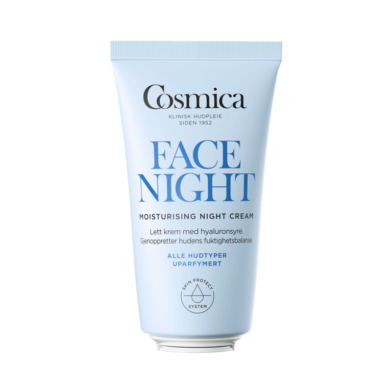 Gi sensitiv hud den nattlige pleien den trenger. Cosmica Moisturising Night Cream er en uparfymert og skånsom nattkrem som gjenoppbygger hudbarrieren og gjenoppretter balansen.