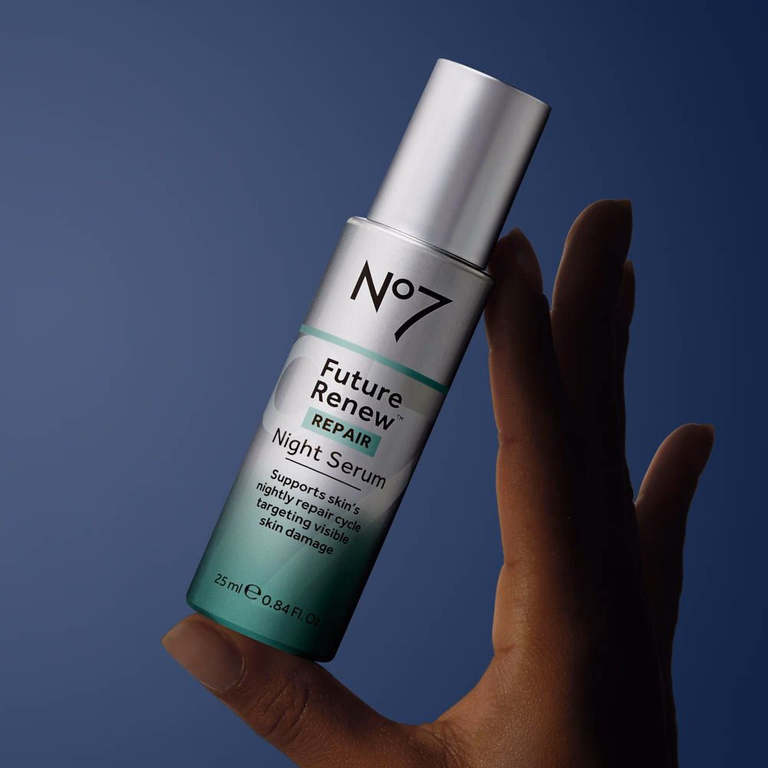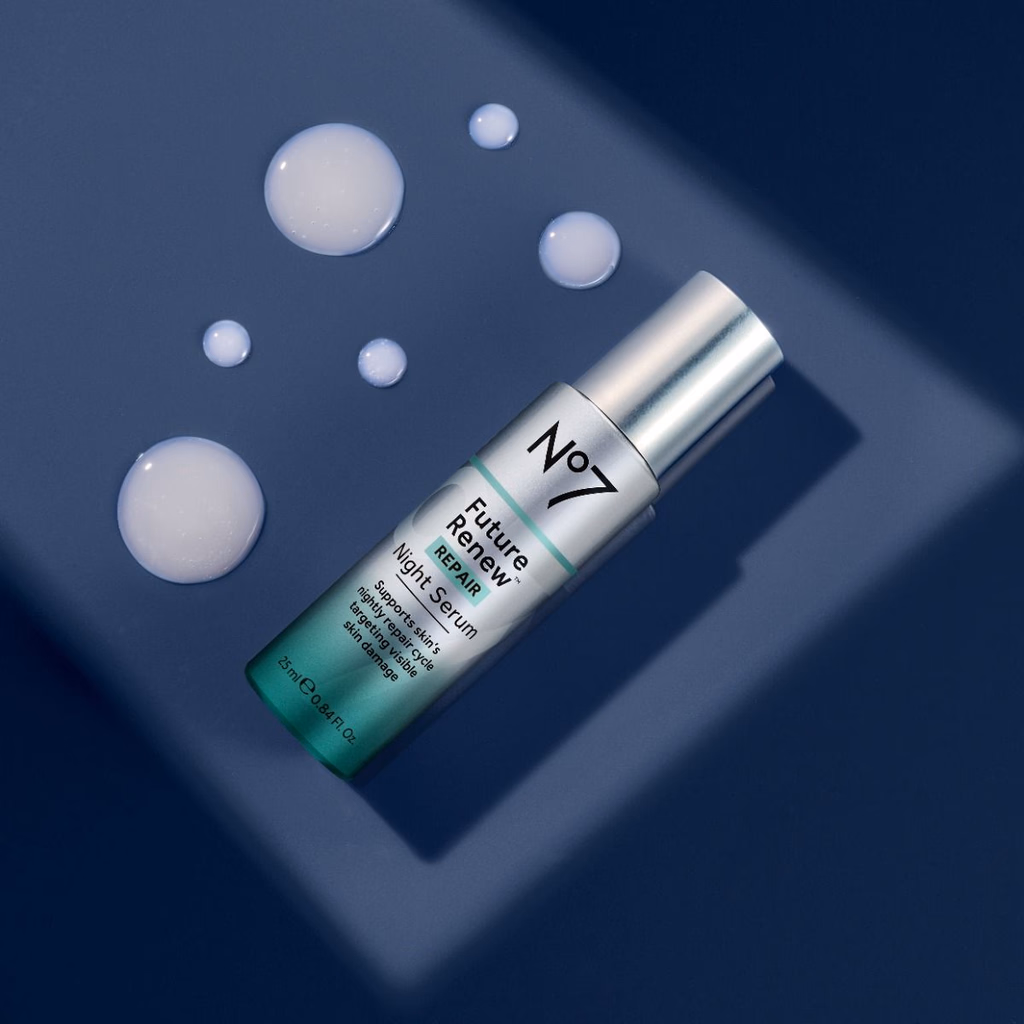 Våkne opp til en fornyet hud med No7 Future Renew. Reparerende nattserum som jevner ut tekstur og rynker. Dermatologisk testet for sensitiv hud.