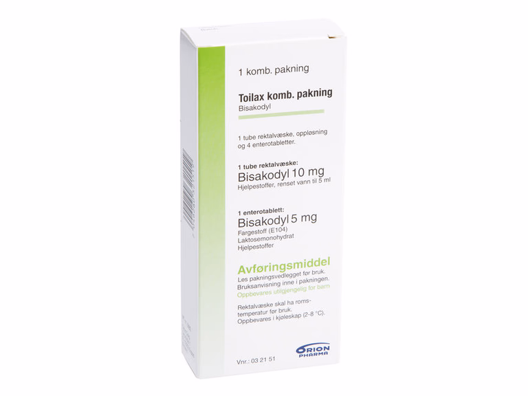 Toilax Kombinasjonspakning enterotablett 5 mg/rektalvæske 10 mg/dose